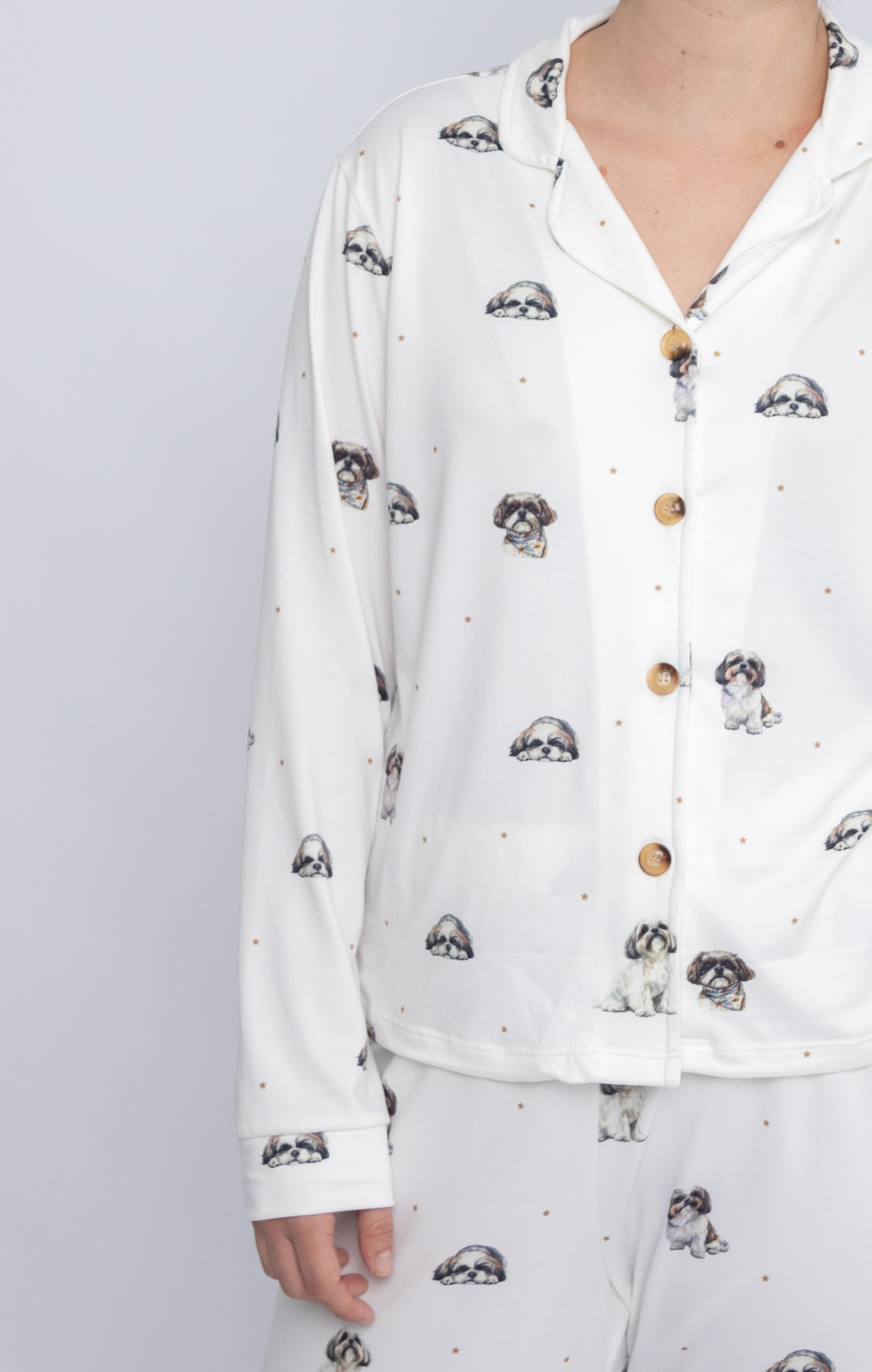 Pijama de SHIH TZU🐾 Modelo Briana Camisero manga larga & Pantalón )